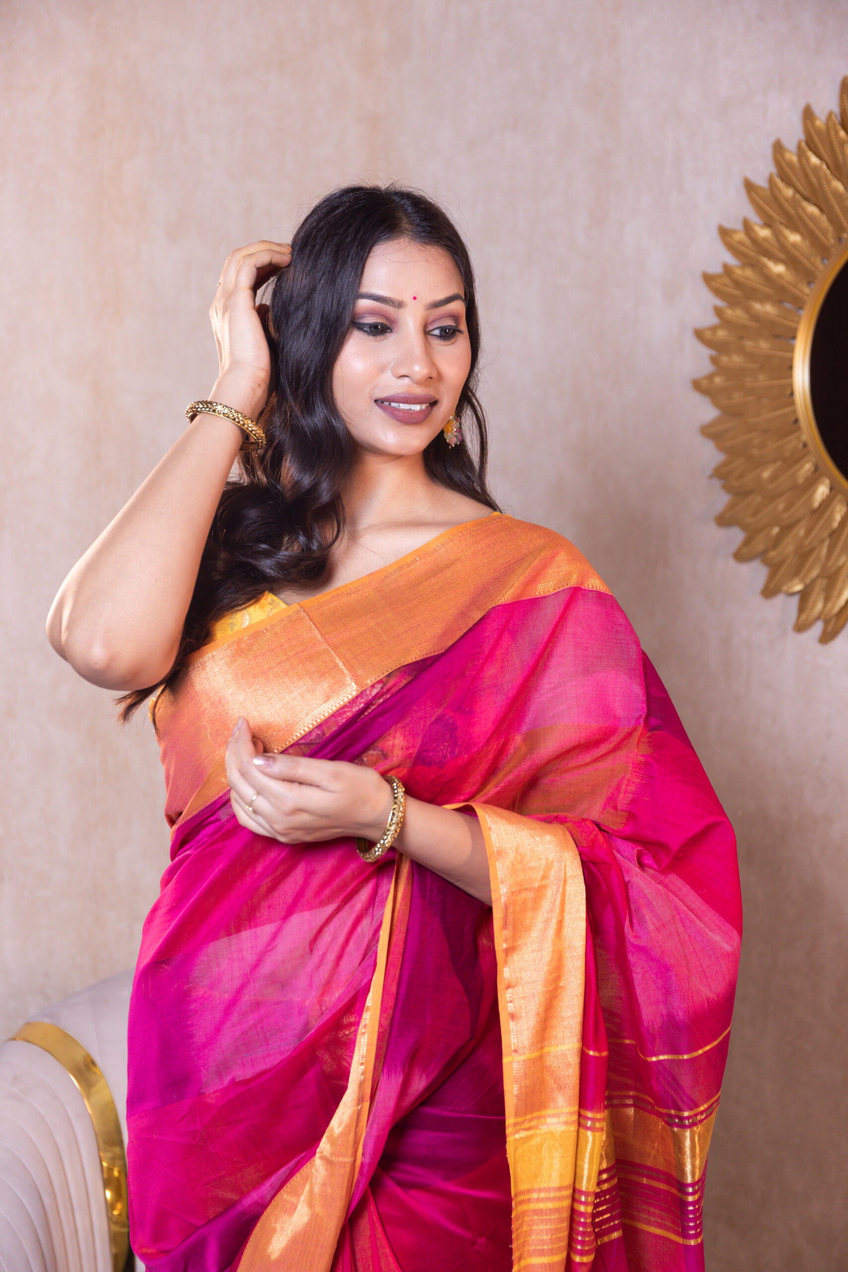 Blend- Premium Maheshwari silk-cotton blend – breathable and light