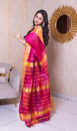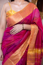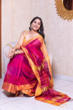 Border – Golden zari checks throughout with a contrasting striped pallu